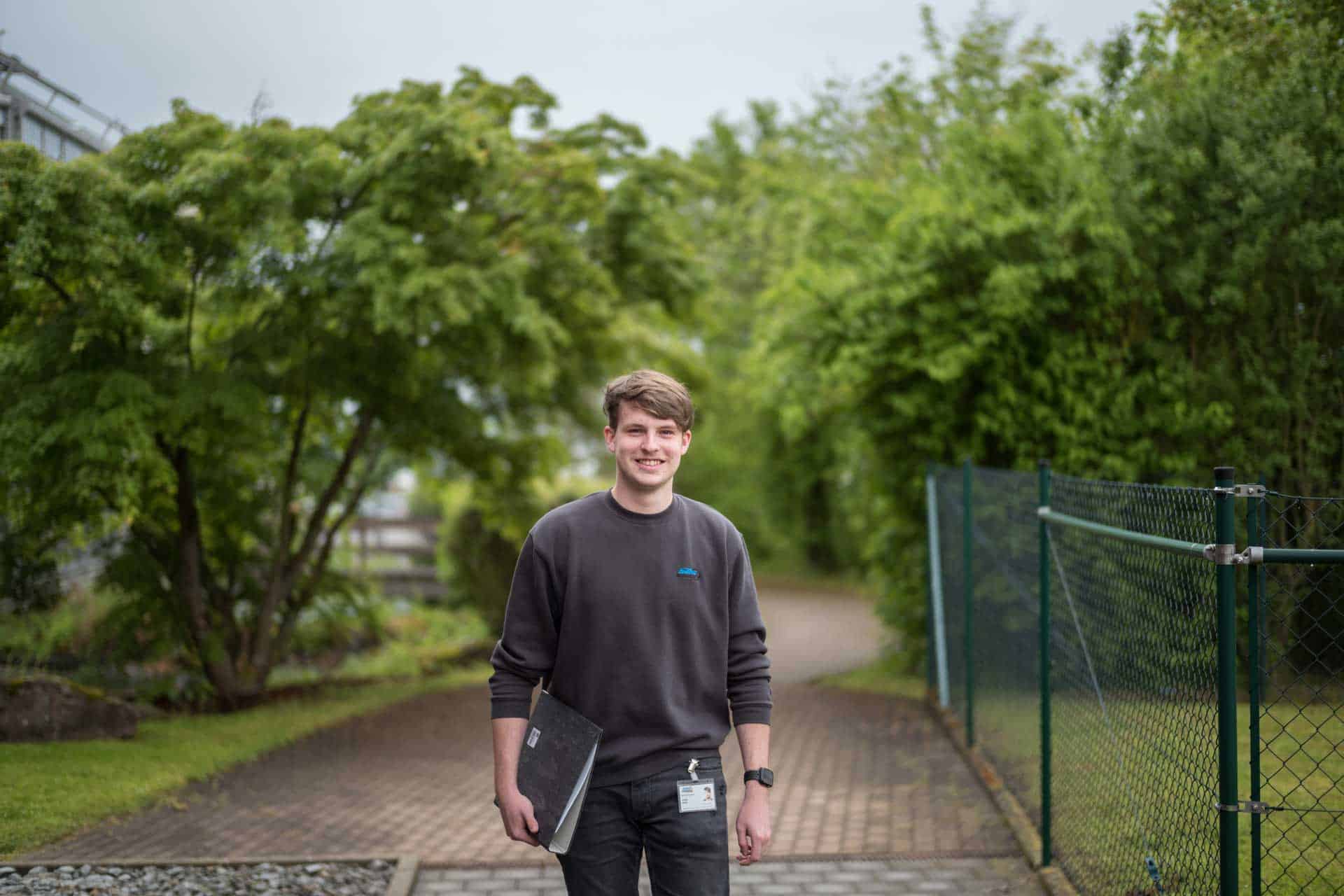 Das ist Lukas, Ausbilder für den Beruf technische:r Produktdesigner:in. Mit deinen Fragen kannst du dich immer an ihn wenden.